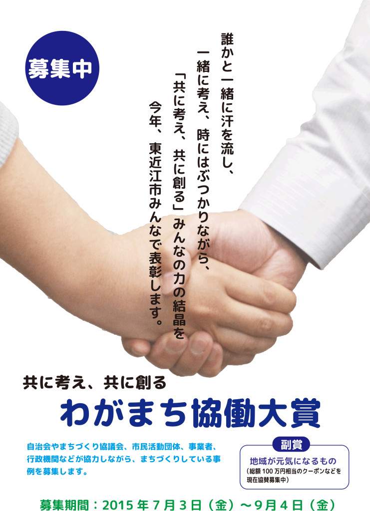 この賞は、東近江市で活動している事業の中で、協働で活動しているものを表彰することを目的としています。