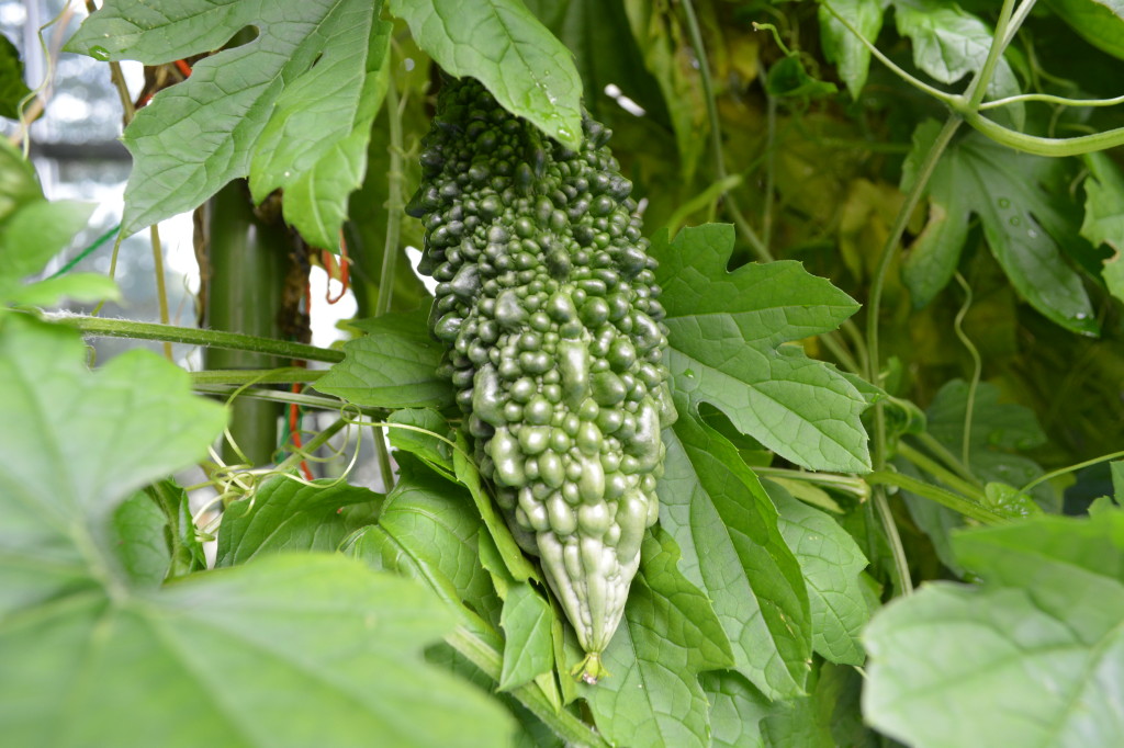 暑さをやわらげてくれるゴーヤ達ですが、こんな天気のなかでも強く立っている姿に、少し感動しました。