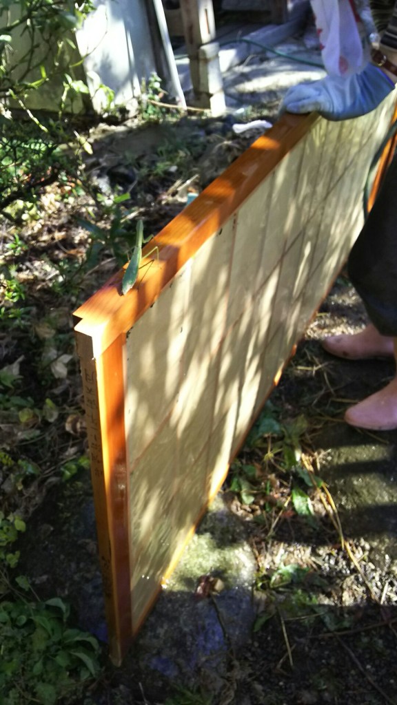 集ってほしいと企画されました。イベントのための障子はたくさんあるので、今日はそのうちの何枚かを洗って紙をはがして乾かしました。