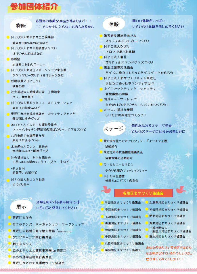 市内のNPOさんや各まちづくり協議会、市民活動をしている団体が一同に集まる大きなイベントです!!