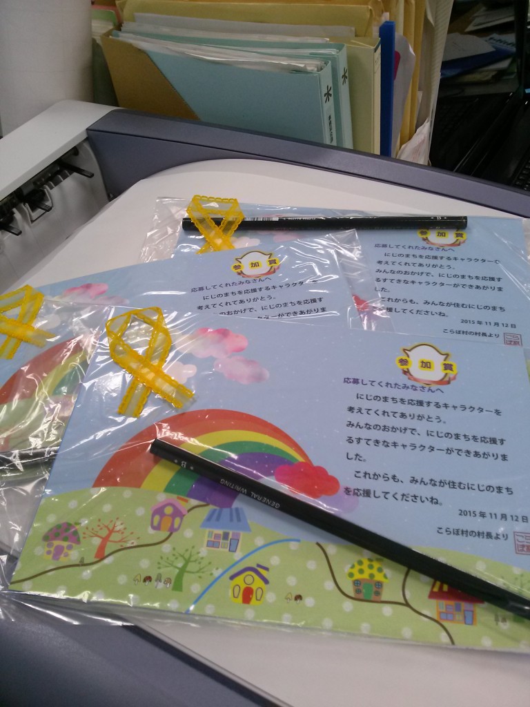 にじのまちを応援するキャラクターに応募があった小学生に、