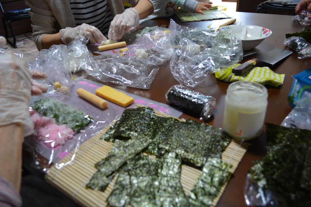 参加された皆さんとお話しながら、、、と思っていたのですが、製作中はみなさん(私も)目の前の巻きずしに集中していました。