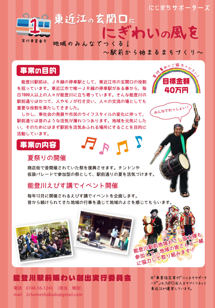 東近江で唯一のJR停車駅がある能登川駅。その駅前の通りを元気にする事を目的に活動されている団体です。