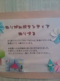 手作りの折り紙は、折り紙グループ「おりづる」さんがボランティアで、つくっておられるそうです。